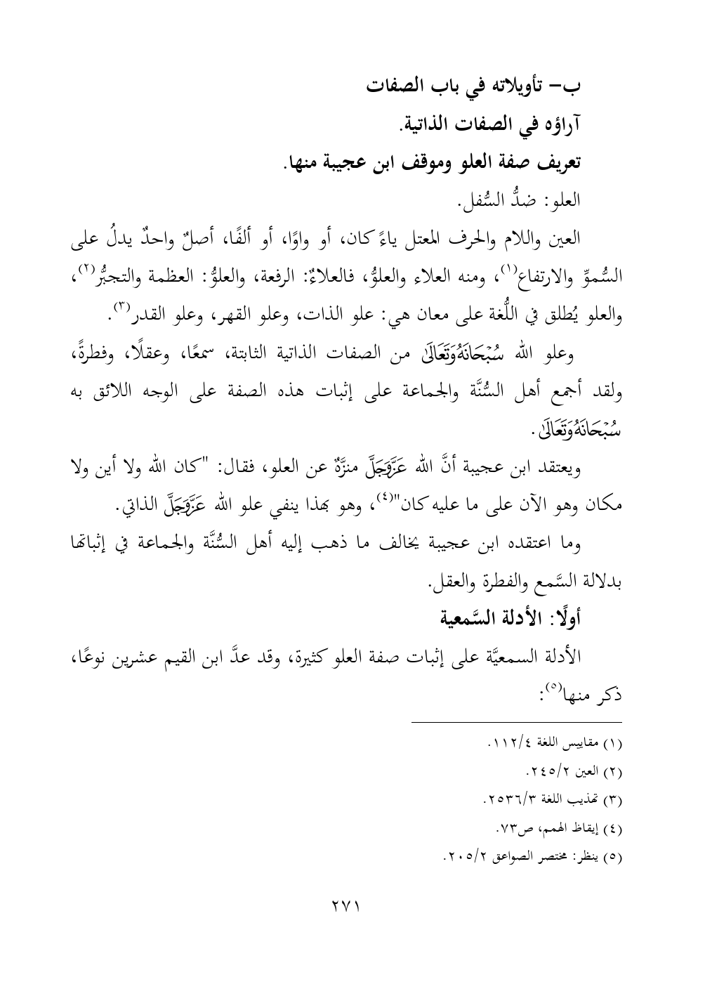 تعريف صفة العلو وموقف ابن عجيبة منها.