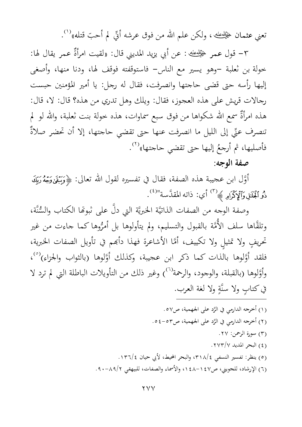 (¬٦) الإرشاد، للجويني، ص ١٤٧ - ١٤٨، والأسماء والصفات، للبيهقي ٢/ ٨٩ - ٩٠.