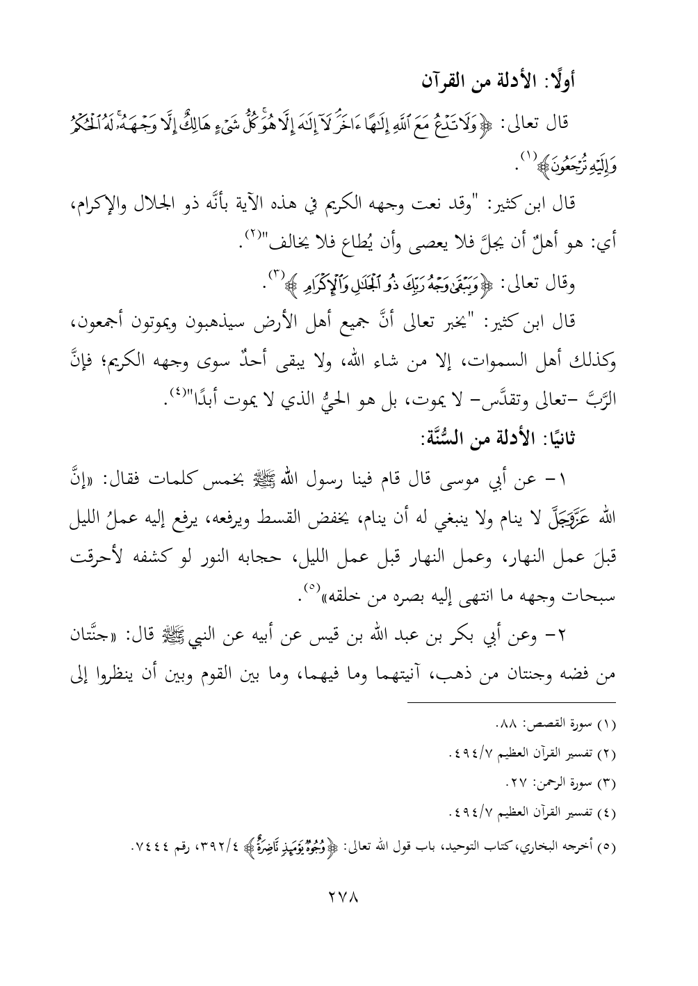 قال تعالى: {وَلَا تَدْعُ مَعَ اللَّهِ إِلَهًا آخَرَ لَا إِلَهَ إِلَّا هُوَ كُلُّ شَيْءٍ هَالِكٌ إِلَّا وَجْهَهُ لَهُ الْحُكْمُ وَإِلَيْهِ تُرْجَعُونَ} (¬١).
