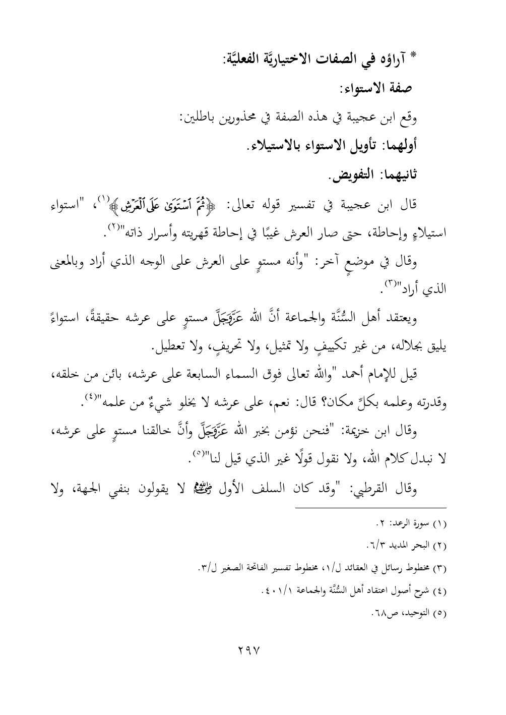 وقال في موضعٍ آخر: "وأنه مستوٍ على العرش على الوجه الذي أراد وبالمعنى الذي أراد" (¬٣).