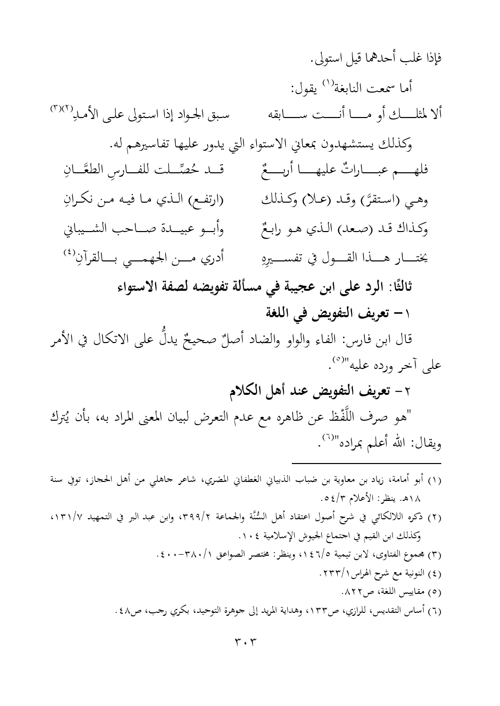 "هو صرف اللَّفْظ عن ظاهره مع عدم التعرض لبيان المعنى المراد به، بأن يُترك ويقال: الله أعلم بمراده" (¬٦).