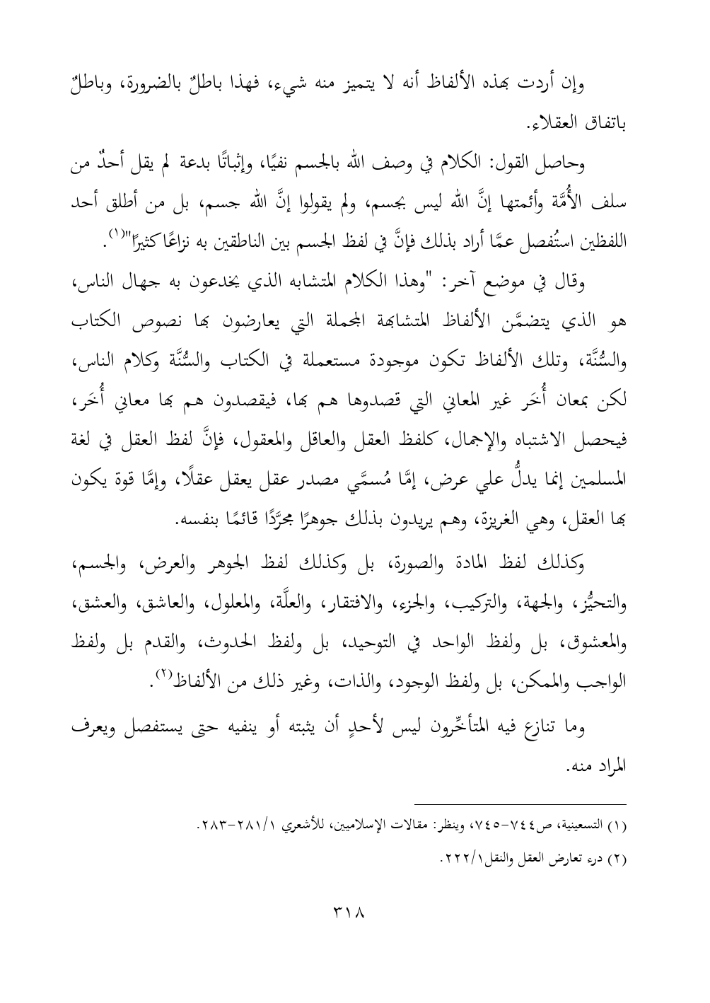 (¬٢) درء تعارض العقل والنقل ١/ ٢٢٢.
