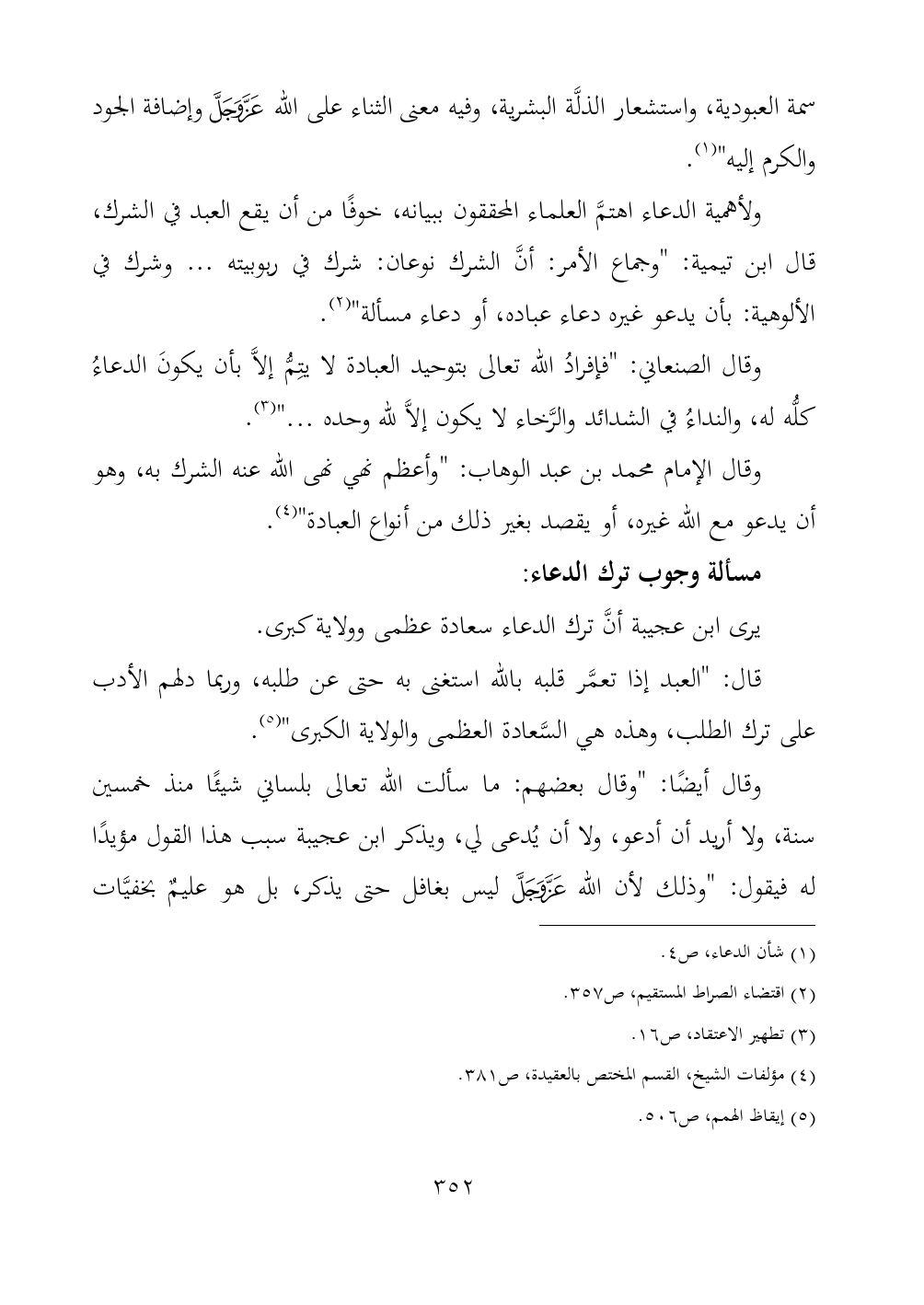ولأهمية الدعاء اهتمَّ العلماء المحققون ببيانه، خوفًا من أن يقع العبد في الشرك، قال ابن تيمية: "وجماع الأمر: أنَّ الشرك نوعان: شرك في ربوبيته ... وشرك في الألوهية: بأن يدعو غيره دعاء عباده، أو دعاء مسألة" (¬٢).