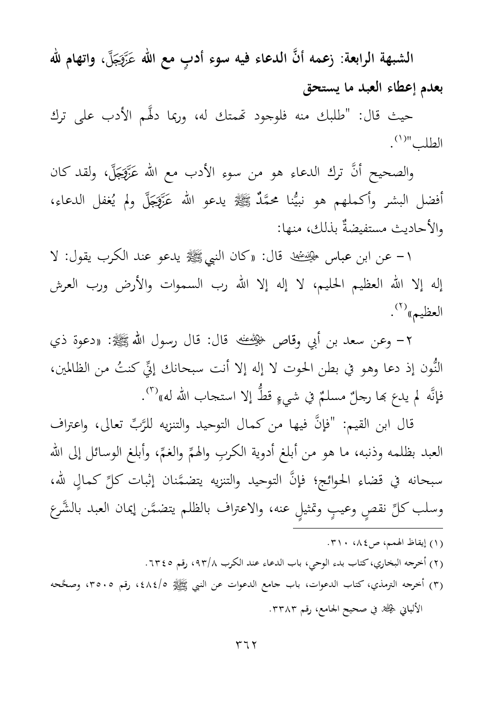 الشبهة الرابعة: زعمه أنَّ الدعاء فيه سوء أدبٍ مع الله - عز وجل -، واتهام لله بعدم إعطاء العبد ما يستحق