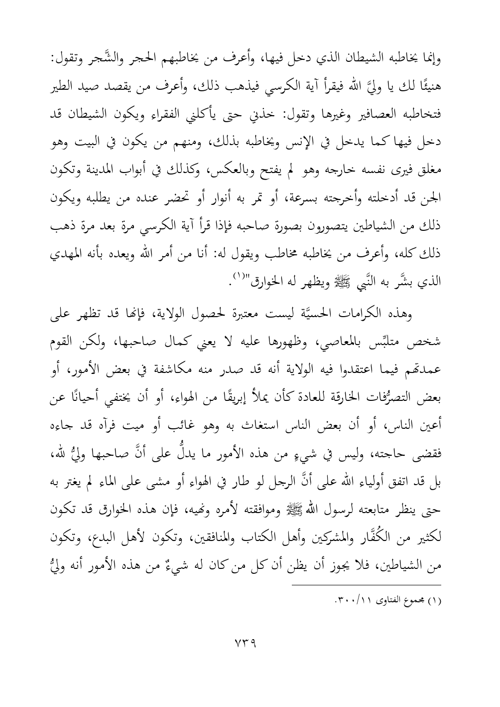 (¬١) مجموع الفتاوى ١١/ ٣٠٠.