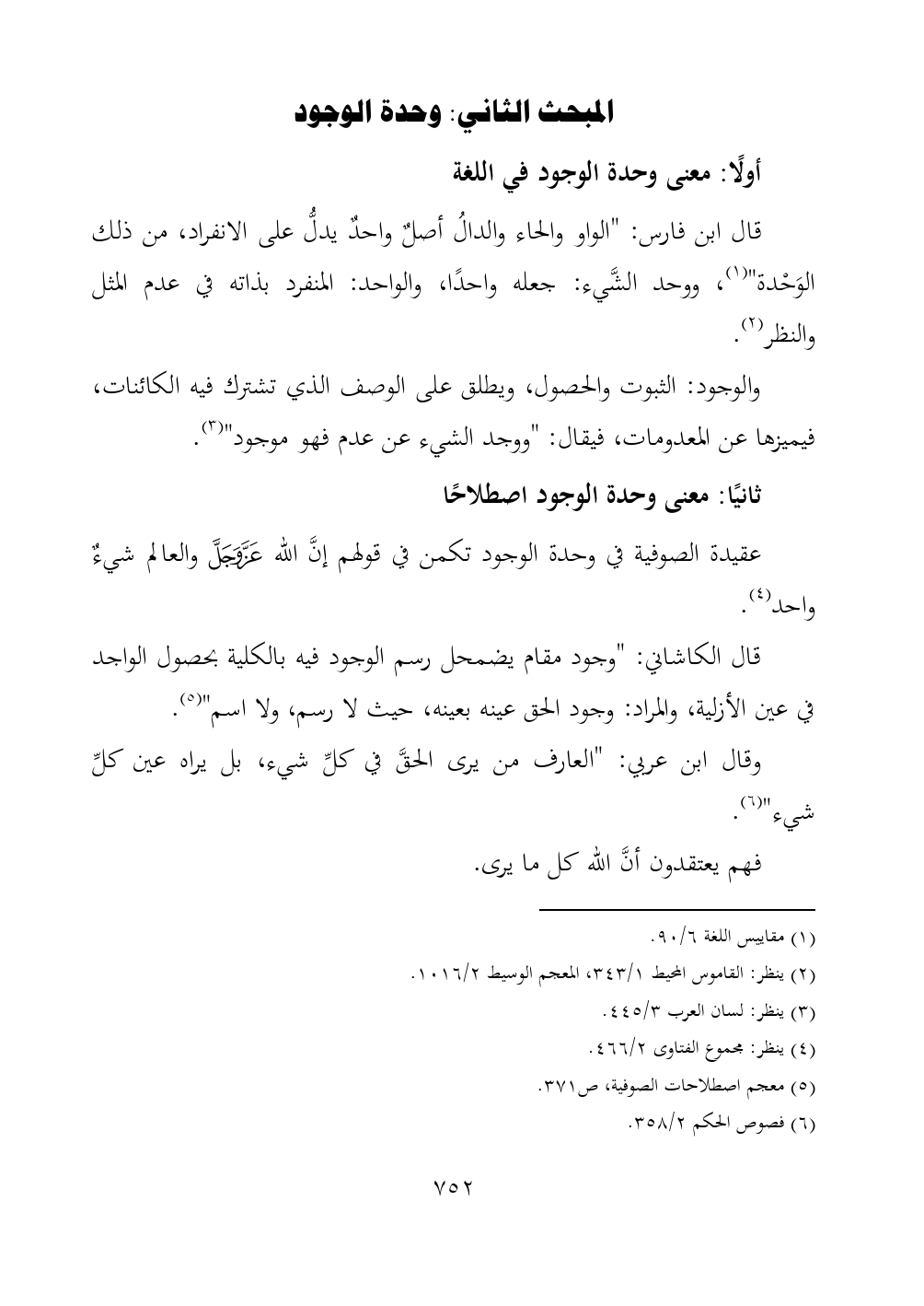 ثانيًا: معنى وحدة الوجود اصطلاحًا