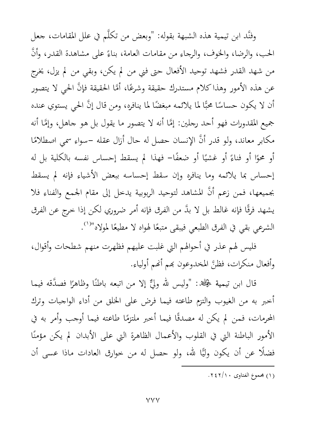 (¬١) مجموع الفتاوى ١٠/ ٢٤٢.
