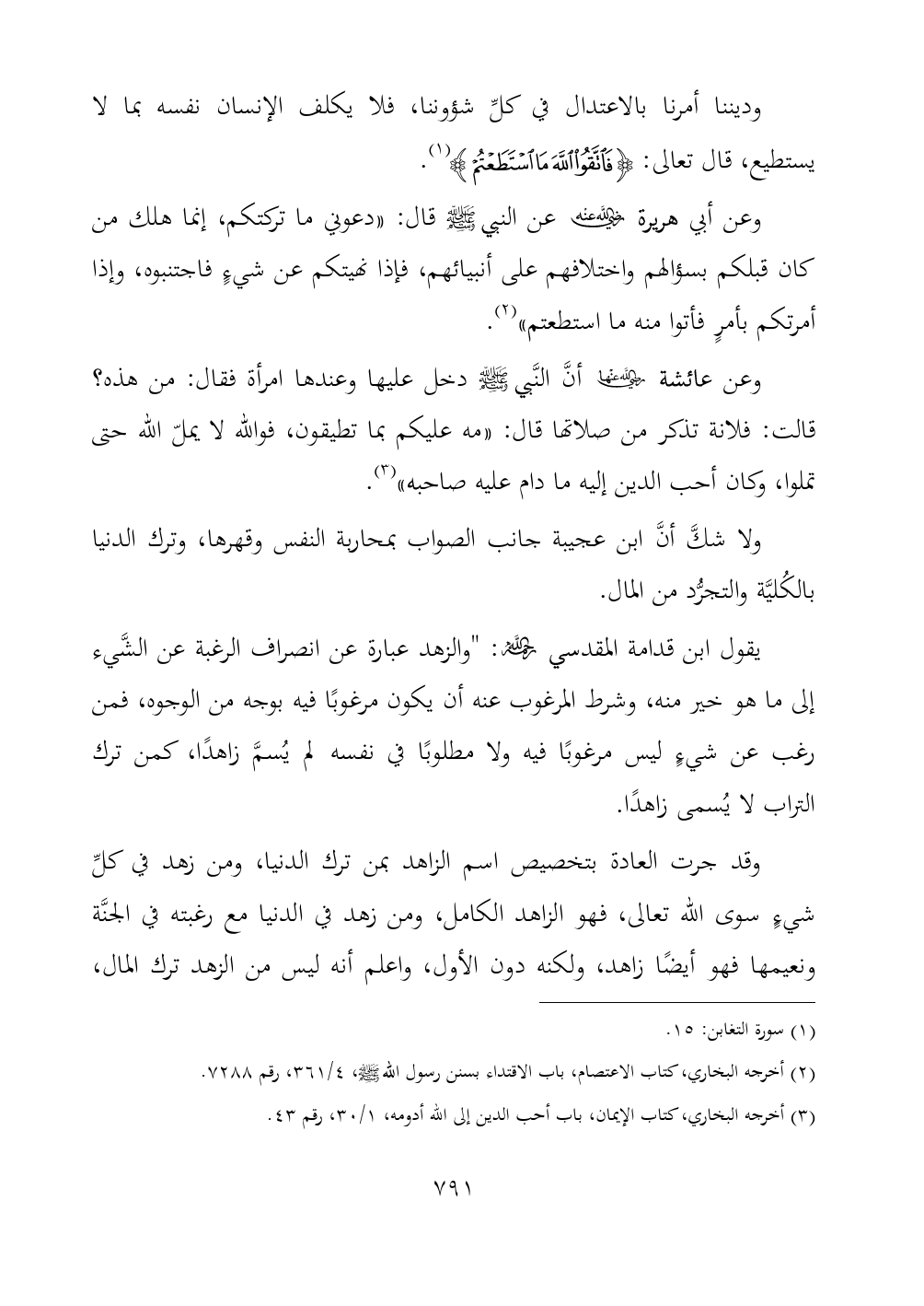 (¬٣) أخرجه البخاري، كتاب الإيمان، باب أحب الدين إلى الله أدومه، ١/ ٣٠، رقم ٤٣.