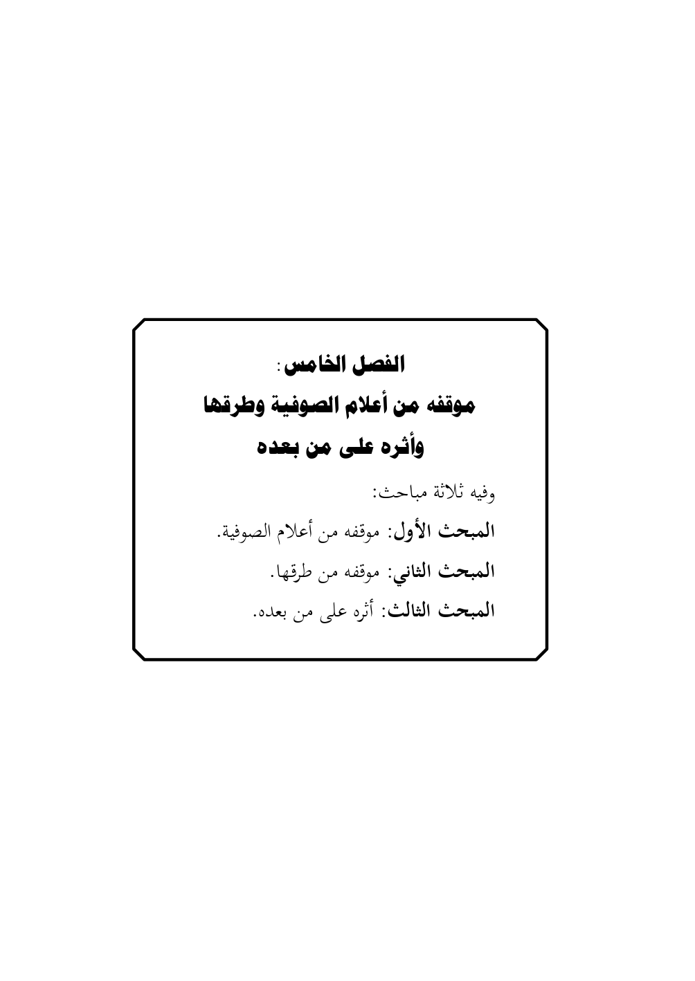 الفصل الخامس: موقفه من أعلام الصوفية وطرقها وأثره على من بعده
