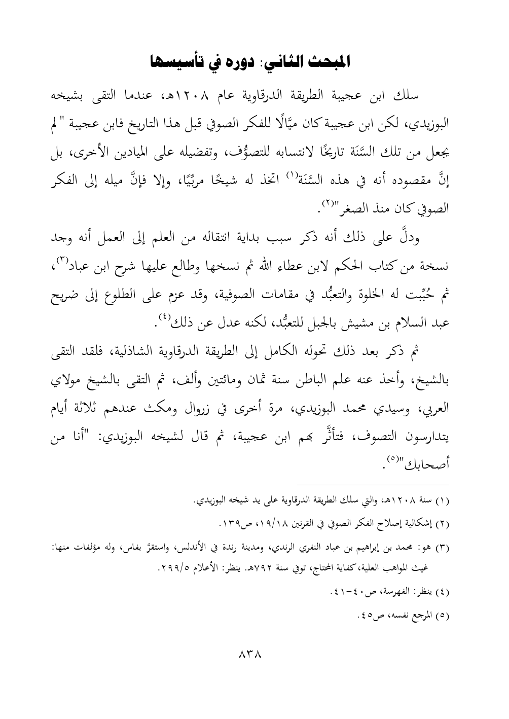 (¬١) سنة ١٢٠٨ هـ، والتي سلك الطريقة الدرقاوية على يد شيخه البوزيدي.
