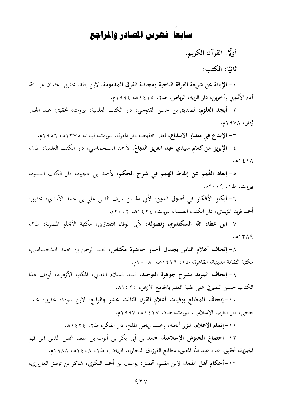 ١ - الإبانة عن شريعة الفرقة الناجية ومجانبة الفرق المذمومة، لابن بطة، تحقيق: عثمان عبد الله آدم الأثيوبي وآخرين، دار الراية، الرياض، ط ٢، ١٤١٥ هـ، ١٩٩٤ م.
