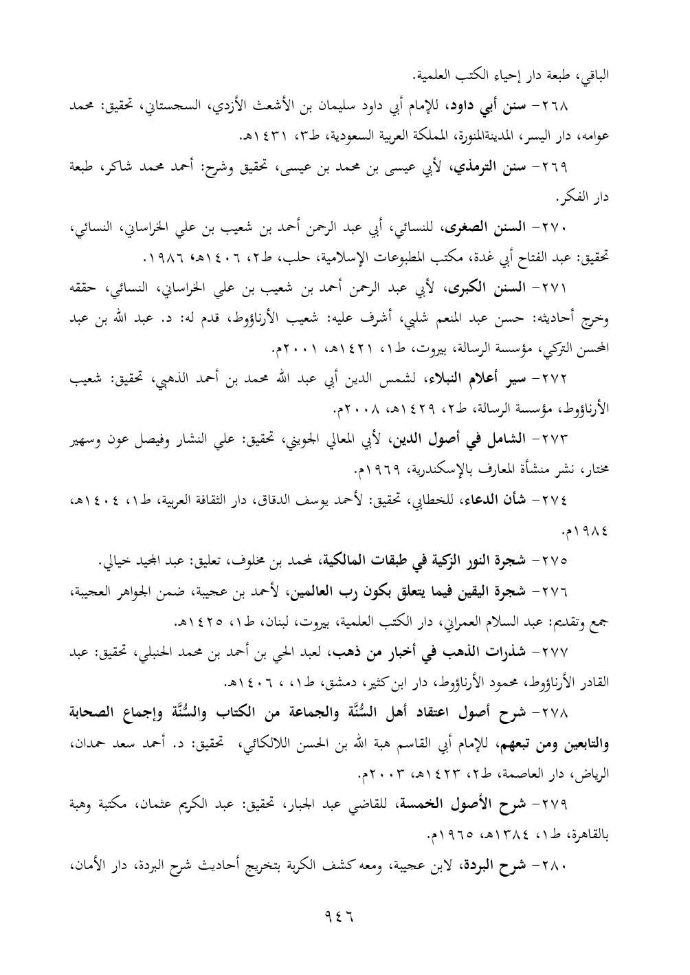 ٢٧١ - السنن الكبرى، لأبي عبد الرحمن أحمد بن شعيب بن علي الخراساني، النسائي، حققه وخرج أحاديثه: حسن عبد المنعم شلبي، أشرف عليه: شعيب الأرناؤوط، قدم له: د. عبد الله بن عبد المحسن التركي، مؤسسة الرسالة، بيروت، ط ١، ١٤٢١ هـ، ٢٠٠١ م.