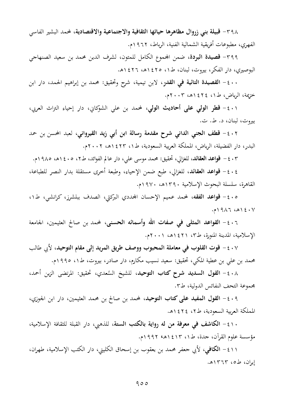 ٤٠٣ - قواعد العقائد، للغزالي، تحقيق: محمد موسى علي، دار عالم الفوائد، ط ٢، ١٤٠٥ هـ, ١٩٨٥ م.