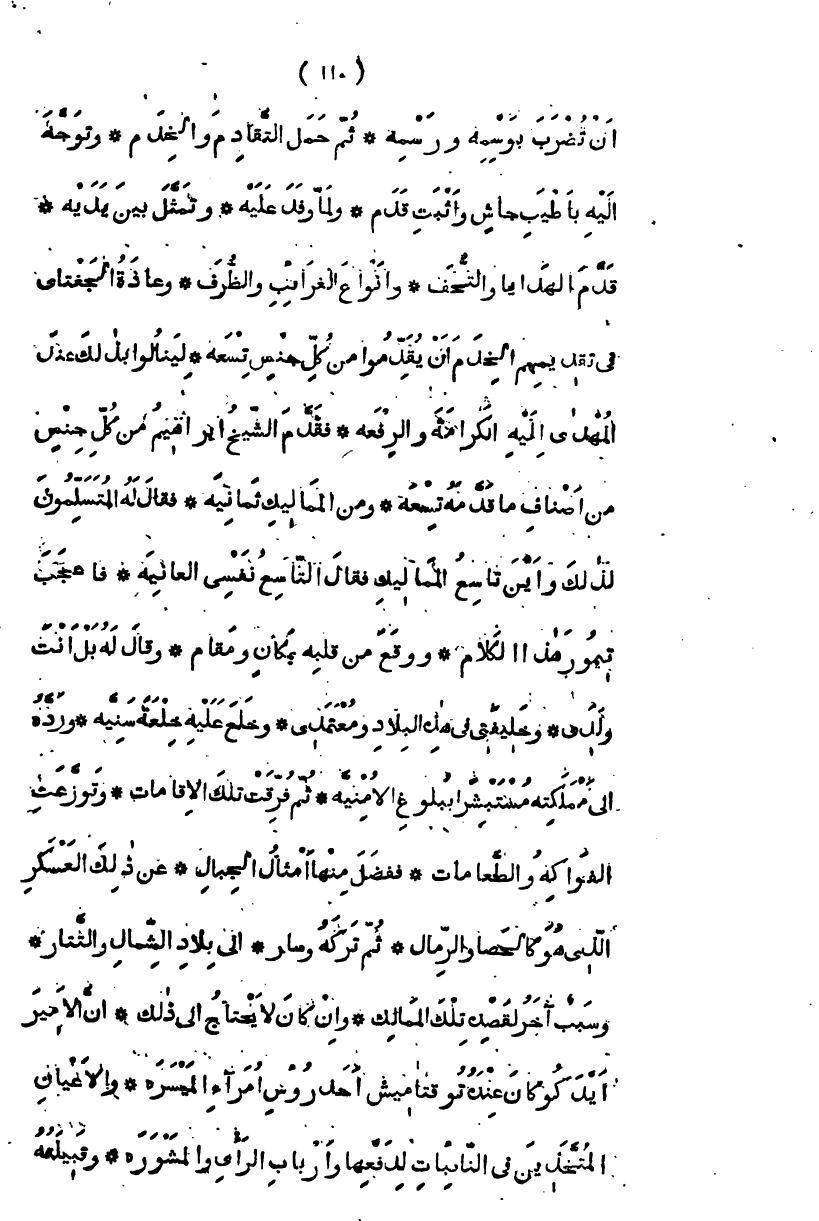 أن تضرب بوسمه ورسمه، ثم حمل التقادم والخدم، وتوجه إليه بأطيب جأش وأثبت قدم، ولما وفد عليه، وتمثل بين يديه، قدم الهدايا والتحف، وأنواع الغرائب والطرف وعادة الجغتاي في تقديمهم الخدم أن يقدموا من كل جنس تسعة، لينالوا بذلك عند المهدى إليه الكرامة والرفعة، فقدم الشيخ إبراهيم من كل جنس من أجناس ما قدمه تسعة، ومن المماليك ثمانية، فقال له المتسلمون لذلك وأين تاسع المماليك؟ فقال التاسع نفسي العانية، فأعجب تيمور هذا الكلام، ووقع من قلبه بمكان ومقام، وقال له بل أنت ولدي، وخليفتي في هذه البلاد ومعتمدي، وخلع عليه خلعة سنية ورده إلى مملكته مستبشراً ببلوغ الأمنية ثم فرقت تلك الإقامات، وتوزعت الفواكه والطعامات، ففضل منها أمثال الجبال عن ذلك العسكر الذي هو كالحصى والرمال، ثم تركه وسار إلى بلاد الشمال والتتار وسبب آخر لقصده تلك الممالك وإن كان لايحتاج إلى ذلك، أن الأمير إيدكو كان عند توقتاميشس أحد رؤوس أمراء الميسرة والأعيان المتخذين في النائبات لدفعها وأرباب الرأي والمشورة، وقبيلته