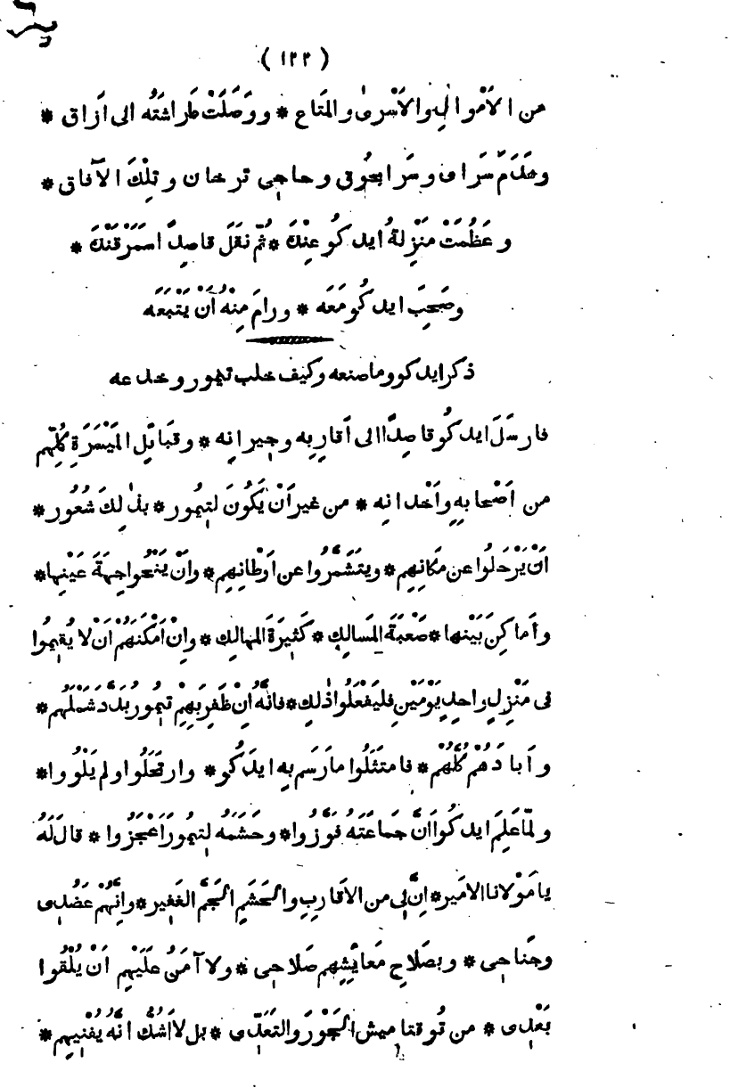فأرسل إيدكو قاصداً إلى أقاربه وجيرانه، وقبائل الميسرة من أصحابه وأخدانه، من غير أن يكون لتيمور، بذلك شعور، أن يرحلوا عن مكانهم وينشمروا عن أوطانهم، وأن ينحوا جهة عينها وأماكن بينها، صعبة المسالك، كثيرة المهالك، وإن أمكنهم أن لا يقيموا في منزل واحد يومين فليفعلوا ذلك، فإنه إن ظفر بهم تيمور بدد شملهم وأبادهم كلهم، فامتثلوا ما رسم به إيدكو وارتحلوا، ولم يلووا ولما علم إيدكو أن جماعته فوزوا، وحشمه لتيمور أعجزوا، قال له يا مولانا الأمير إن لي من الأقارب والحشم الجم الغفير، وإنهم عضدي وجناحي، وبصلاح معايشهم صلاحي، ولا آمن عليهم إن بقوا بعدي، من توقتاميش الجور والتعدي، بل لا شك أنه يفنيهم