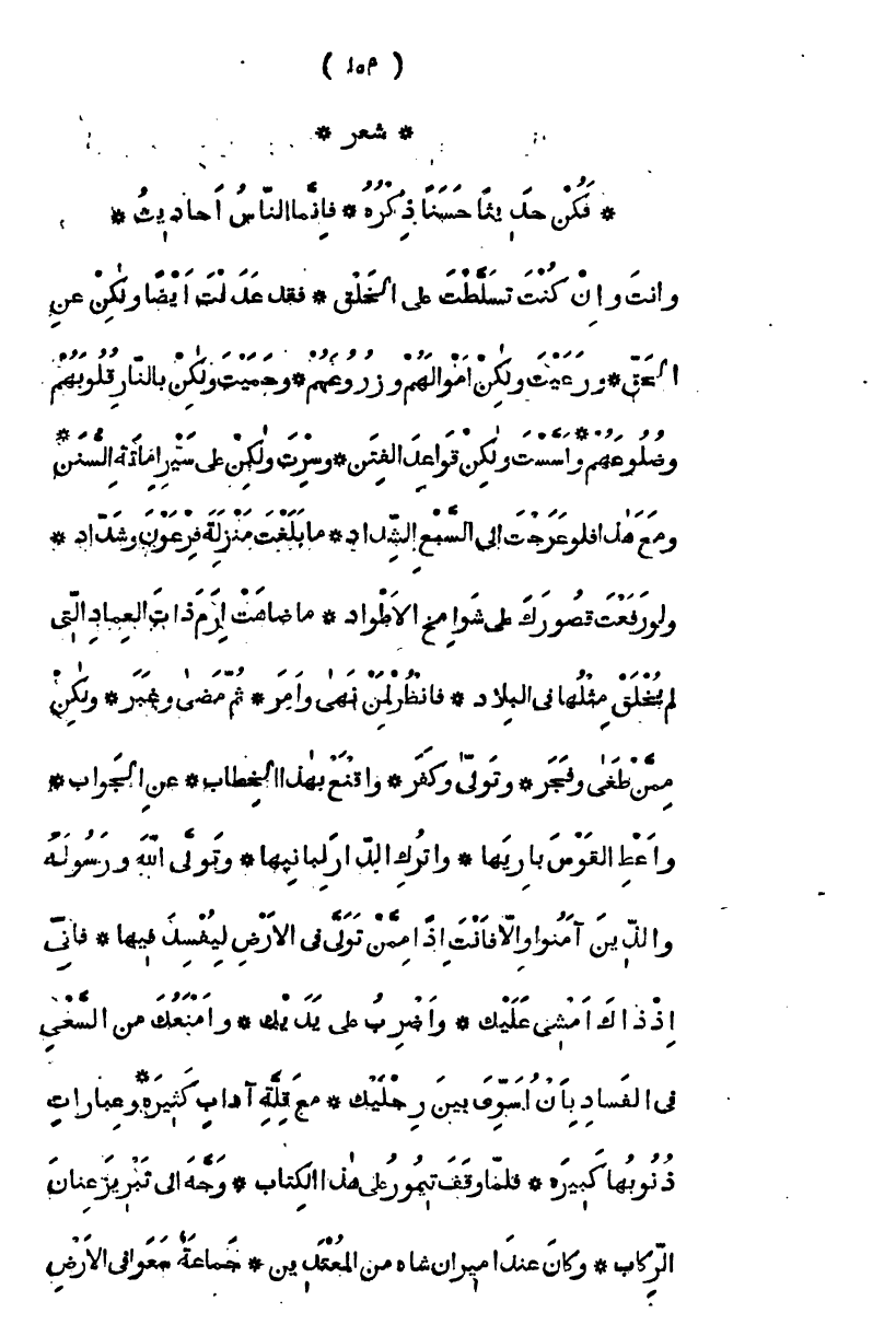 وأنت وإن كنت تسلطت على الخلق، فقد عدلت أيضاً ولكن عن الحق، ورعيت ولكن أموالهم وزروعهم، وحميت ولكن بالنار قلوبهم وضلوعهم، وأسست ولكن قواعد الفتن، وسرت ولكن على سنن إماتة السنن، ومع هذا فلو عرجت إلى السبع الشداد، ما بلغت منزلة فرعون وشداد، ولو رفعت قصورك على شوامخ الأطواد، ما ضاهيت " إرم ذات العماد التي لم يخلق مثلها في البلاد "
