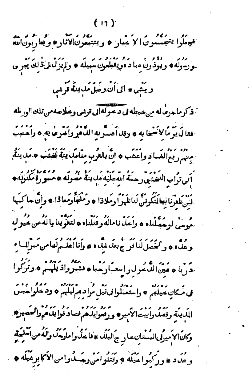 من تأخر، وكابدوا أحوال الموت وشاهدوا أهوال الفوت، فنجوا ولم ينقص منهم واحد، واجتمعوا إلى ذلك الموعد، وذلك بعد أن أمنت منهم البلاد، واطمأن في مسالكها كل رائح وغاد، فجعلوا يتجسسون الأخبار، ويتتبعون الآثار، ويحاربون الله ورسوله، ويؤذون عباده ويقطعون سبيله، ولم يزل على ذلك يجري ويمشي إلى أن وصل مدينة قرشي