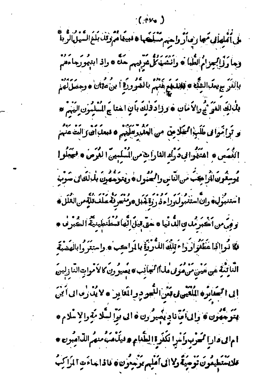 على أهلها في مجاري أرواحهم مسلكها، فبينما هم وقد بلغ السيل الزبى، وجاوز الحزام الطبا، وأنشب كل شر فيهم حده، وإذا بتيمور جاءهم بالفرج بعد الشدة، فاندفع عنهم بالضرورة ابن عثمان، وحصل لهم بذلك الفرج والأمان، وزاد ذلك بأن احتاج المسلمون إليهم، وتراموا في طلب الخلاص من العدو عليهم، فبعد أن زالت عنهم الغصص، اغتنموا في درك الثارات من المسلمين الفرص، فجعلوا يوسفون المراكب من الناس والحمول، ويتوجهون بذلك إلى صوب إلى استنبول وإن استنبول وراء ذروة جبل، ومنحرفة خلف قلة من القلل، وهي من أكبر مدن الدنيا، حتى قيل أنها قسطنطينية الكبرى، فكانوا إذا عطفوا وراء تلك الذروة بالمراكب، واستتروا بالهضبة الناتئة عن عين من هو في هذا الجانب، يصيرون كالأموات النازلين إلى الحفائر، الملقين في قعر اللحود والمقابر، لا يدري إلى أين يتوجهون، وإلى ماذا يصيرون، إلى بر السلامة والإسلام، أم إلى دار الحرب وأسر الكفرة الطغام، فيذهب منهم الذاهبون " فلا يستطيعون توصية ولا إلى أهلهم يرجعون " فإذا جاءت المراكب