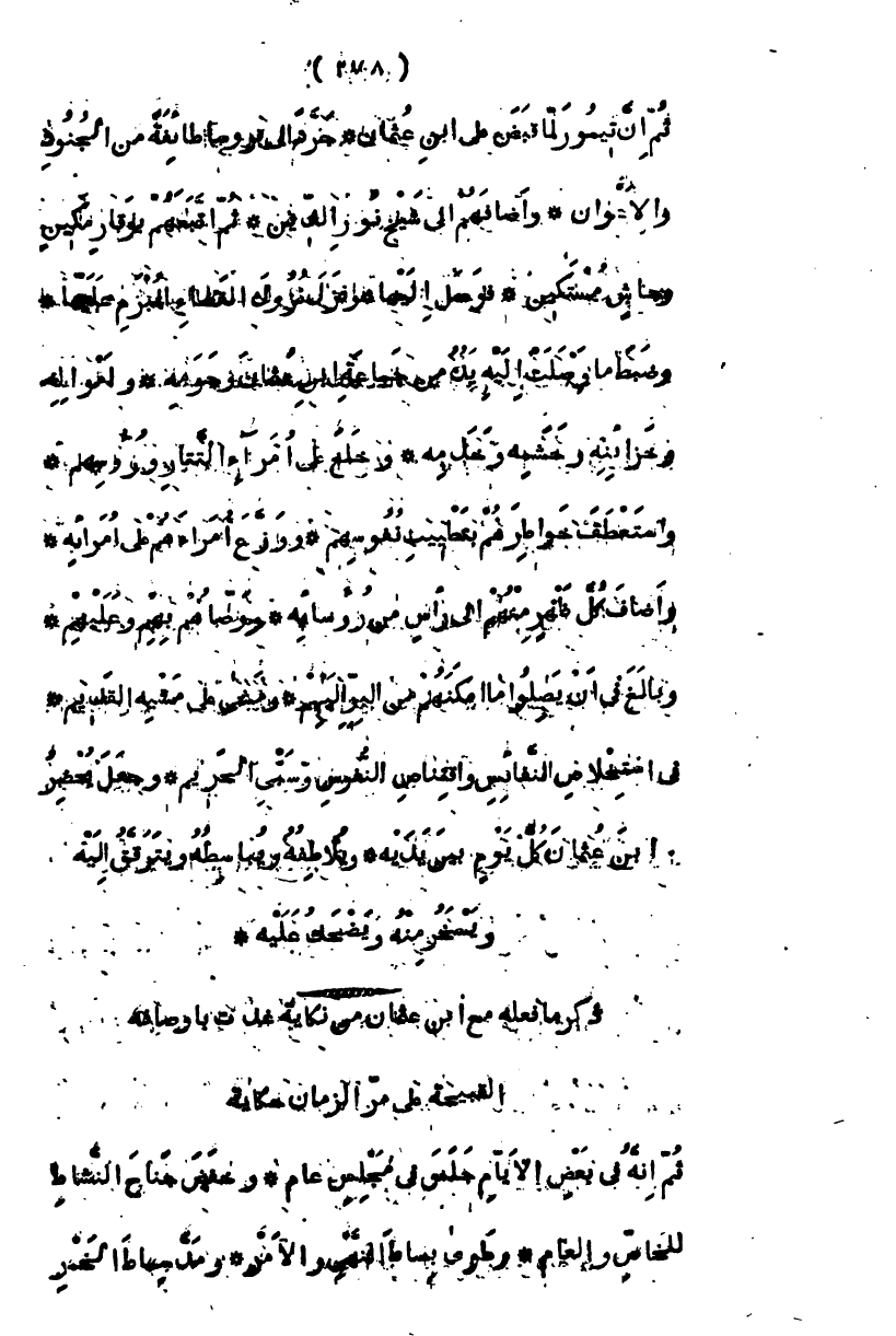 ثم إن تيمور لما قبض على ابن عثمان، جرد إلى بروسا طائفة من الجنود والأعوان، وأضافهم إلى شيخ نور الدين، ثم اتبعهم بوقار مكين، وجأش مستكين، فوصل إليها، ونزل القضاء المبرم عليها، وضبط ما وصلت إليه يده من جماعة ابن عثمان وحرمه، وأمواله وخزائنه وحشمه وخدمه، وخلع على أمراء التتار ورءوسهم، واستعطف خواطرهم بتطييب نفوسهم، ووزع أمراءهم على أمرائه، وأضاف كل ظهر منهم إلى رأس من رؤسائه، ووصاهم بهم وعليهم، وبالغ في أن يصلوا ما أمكنهم من البر إليهم، ومشى على سننه القديم، في استخلاص النفائس واقتناص النفوس وسبي الحريم، وجعل يحضر ابن عثمان كل يوم بين يديه، ويلاطفه ويباسطه ويترقق إليه، ويسخر منه ويضحك عليه