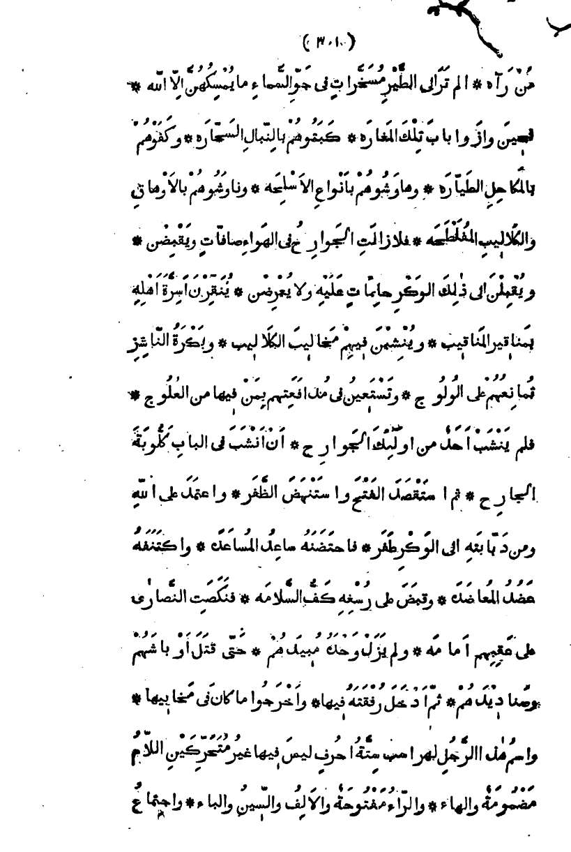 وهي التخت بالاختصاص فتمنعت هذه الأماكن عليه، ولم تسلم قيادها إليه، فأقام يحاصرها، وقعد يناقرها وينافرها، فمن ذلك مغارة بابها في وسط جرف شاهق، آمنة من البوائق سالمة من الطوارق، سقفها آمن من صواعق المجانق، وذيلها أرفع من أن يتشبث به علائق المسالق، مدخلها أخفى من ليلة القدر، وعدم التوصل إليها أجلى من القمر ليلة البدر فأولع بمحاصرتها، والتزم بمضاجرتها، واستعمل من فكره مهندسه، وجعل لا يقر من الأفكار والوسوسة، ثم أنتج رأيه المتين، وفكره الرصين، أن يرسل عليها عذاباً من فوقها، وأن يصطاد تلك الحمامة الصاعدة في الجو بأرجلها من طوقها فأمر أن يصنعوا له توابيت على هيئة الدبابات، كأنهن شياطين النساء للرجل غلابات، وأوثقهن بالسلاسل الحكيمة، وأوسقهن بالرجال ذوي الشكيمة، وأدلاهن من تلك القلال، وأهواهن من شواهق الجبال، فتدلين في الهواء، تدلية مبرم القضاء، فملأن النفانف، وأرجفن من الجبال والرجال الروانف، وصار لسان حال تلك الصقور والشواهين ينادي كل