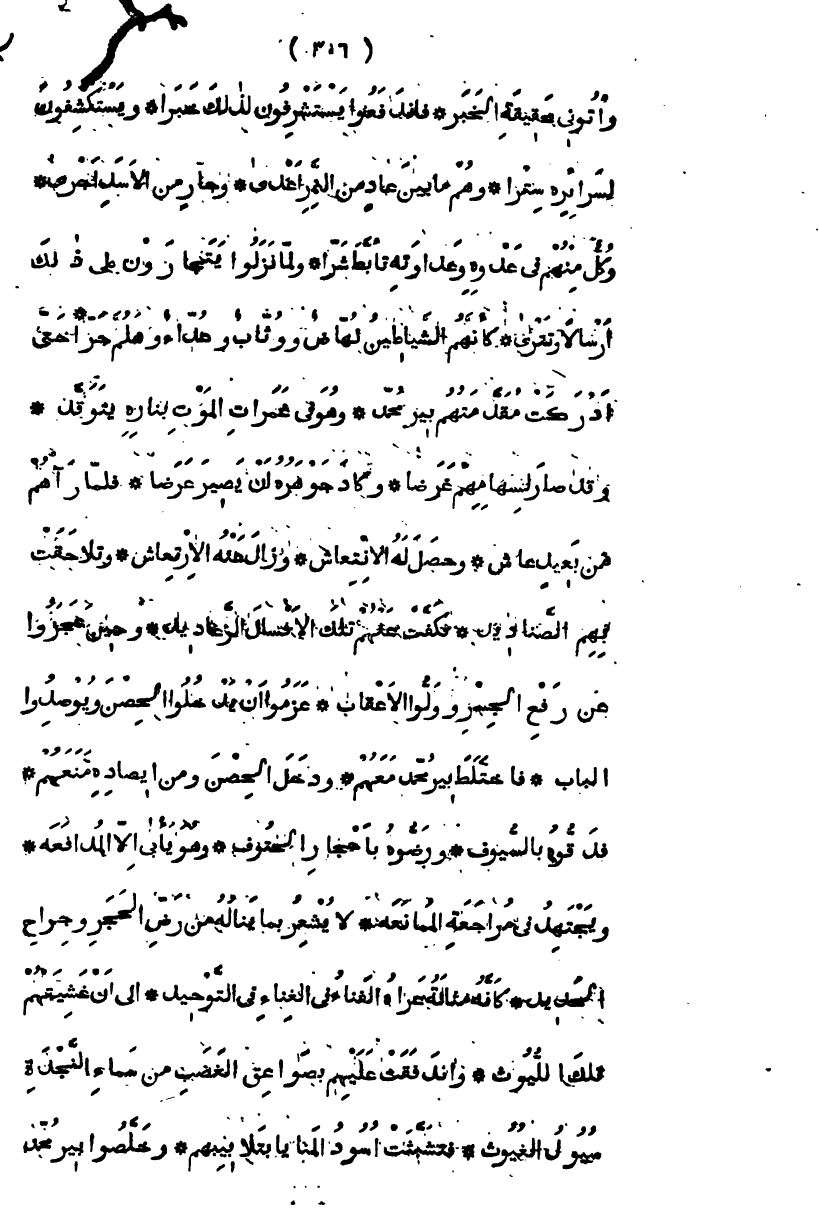 ولم يزل على المكافحة والمناضحة، والمكاشحة والمكالحة، حتى تعالى النهار، وعض الكون من فعاله أنملة العجب وأخذ عين المكان الانبهار وكان المحاصرون لها كفوا عن القتال، وتيمور قد عزم كما ذكر على الترحال، وكان سرادقه منصوباً بمكان عال، فناداه لسان الفتح، وخاطبه منادي النجح