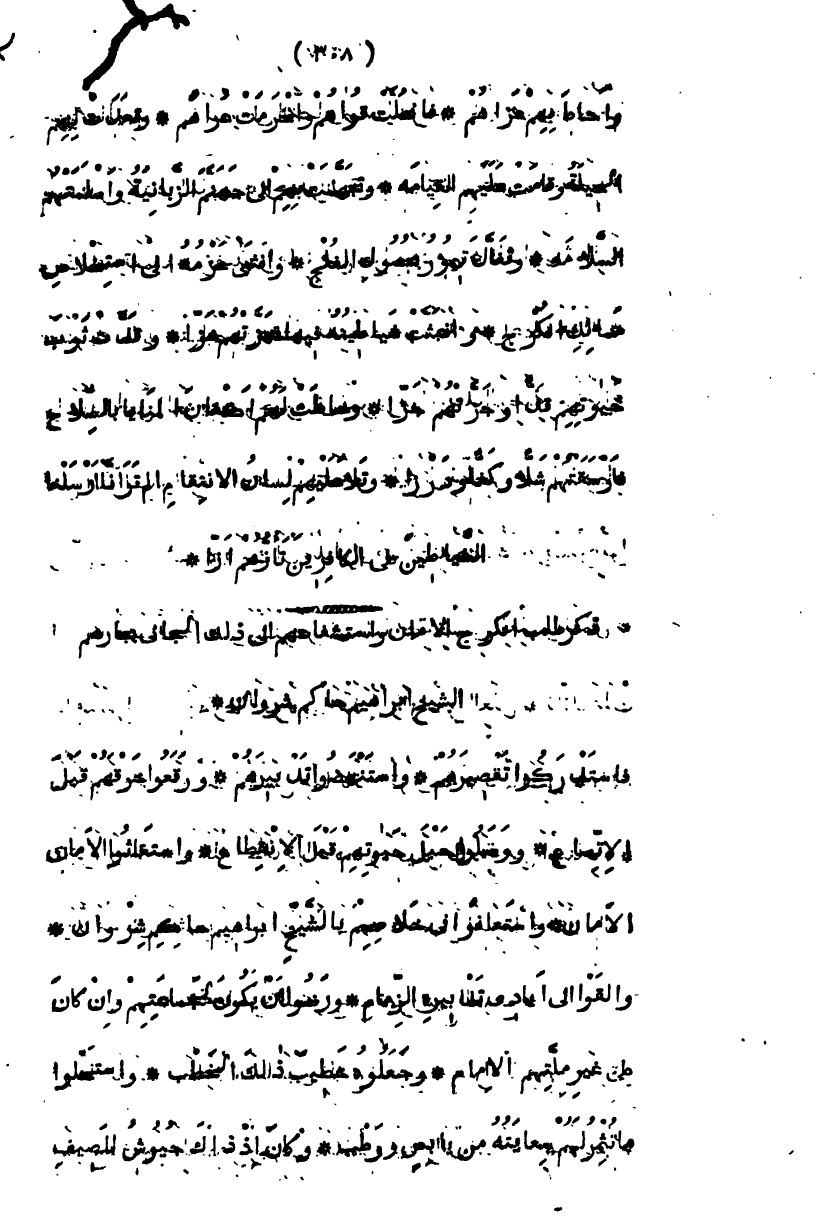 من مخاليبهم ثم قبضوا على النصارى، وأخرجوا ما لهم فيئاً وحريمهم سبايا وأولادهم أسارى، وحملوا إلى تيمور بير محمد، وأخبروه بما قصده في ذلك وتعمد، وتفقدوا ما به من جراح أدمى، فإذا هي ثمانية عشر جرحاً كل منها يصمى، فشكر له فعله، ووعده مواعيد جزلة، وأحله المحل العزيز، وجهزه إلى تبريز، وأمر بعد الوصية به الأمراء من النواب والرؤساء، أن يجمعوا عليه كل نطيس من الأطباء، وخريت من الأسا، بحيث أن يبذلوا في معالجته جهدهم، ويستوعبوا في أساه كدهم، ويستوفوا في المعالجة قسمي العلم والعمل، فامتثلوا مراسيه وعالجوه بما أمكنهم وأزاحوا العلل، فاندملت جروحه، وبرئت أحسن مما كانت قروحه فلما نصل، وإلى تيمور وصل، جعله أحد قواده، ورئيس طائفة من أجناده، وقدمه على كثيرين بعد أن كان خلف، وصيره أمير مائة مقدم ألف