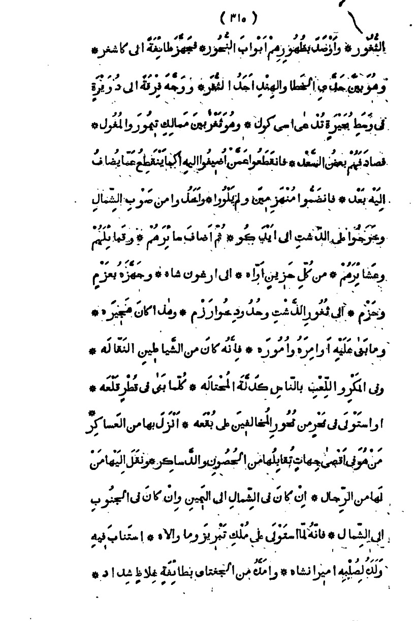 ويأمره فيخضع بالسمع والطاعة إجلالا وصمتا، ويمهد له فيما ولاه قواعد ومباني ف " لا ترى فيها عوجاً ولا أمتاً " ثم جهز كلاً منهم بما اقتضاه رأيه وأجازه، ووصل إلى جيحون وقد أعدت له السفن والمراكب فجازه، فخرج أهل المدينة للاستقبال، وكل منهم منشرح البال ملتئم الحال، فدخل سمرقند أوائل سنة سبع وثمانمائة، ومعه من طوائف الأمم الاثنتان والسبعون فرقة، وأكثرهم قدرية ومرجئة، ثم أذن لمن اختاره من العساكر فتفرقت، ولطوائف جند ما وراء النهر فتمزقت