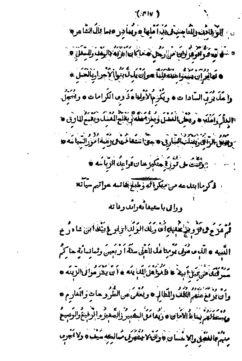 ثم شرع في تزويج حفيده أولوغ بك بن شاه رخ النبيه، الذي هو في يومنا هذا أعني سنة أربعين وثمانمائة حاكم سمرقند من قبل أبيه، فأمر أهل المدينة أن يشرعوا في الزينة، وأن يرفع عنهم الكلف والمظالم، ويعفوا من الطروحات والمغارم، ويبسط لهم بساط الأمان، ويعامل الكبير والصغير والرفيع والوضيع منهم بالفضل والإحسان، وأن لا يشهر في ممالكه سيف، ولا يجري