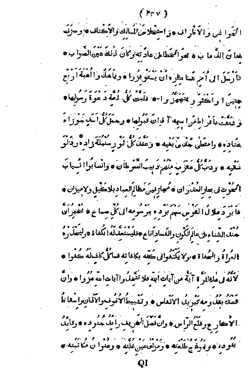 فأرسل إلى أمم عساكره أن يستوفزوا، ويأخذوا أهبة أربع سنين أو أكثر ويتجهزوا، فلبت كل أمة دعوة رسولها، وشنفت بأقراط مراسيمه أذان قبولها، وحمل كل أسد جوزاء عتاده، وامتطى جدى بغيه، وأعد كل ثور سنبلة زاده ودلو سقيه، ودب كل عقرب منهم دبيب السرطان، وانسابوا انسياب الحوت في بحار العدوان، مجازفين مظالم العباد بلا كيل ولا ميزان فأبرد هلال القوس سهم برده بمرسومه إلى كل صماخ، يخبر أن جند الشتاء على عالم الكون والفساد أناخ، فليستعد له الكفاة، وليحذره العراة والحفاة، ولا يكتفوا في كفه بكافاته فما كل كاف له كفوا، لأنه في هذه المرة آية من آيات الله فلا تتخذوا آيات الله هزوا وأن قصده بقدومه تبريد الأنفاس، وتشويط الأنوف والآذان وإسقاط الأكارع وقلع الرأس، وأن فصل الخريف رائد جنوده، وقائد بنوده، ونموذج طلعته، ومري عين غلته وعنوان مكاتبته