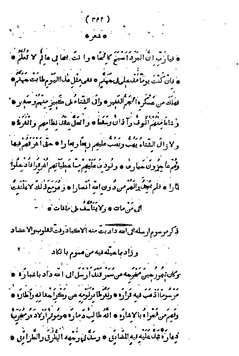 فهلك من عساكره الجم الغفير، وأتى الشتاء على كثير من كبير منهم وصغير، وشاط منهم أنوف وآذان وسقط، وانحل عقد نظامهم وانفرط، ولا زال الشتاء يهب ويصب عليهم ريحاً وبحارا، حتى أغرقهم فيها وهم عاجزون حيارى، ونودي عليهم " مما خطيئاتهم أغرقوا فأدخلوا نارا فلم يجدوا لهم من دون الله أنصارا " وهو مع ذلك لا يلتفت إلى من مات ولا يتأسف على ما فات