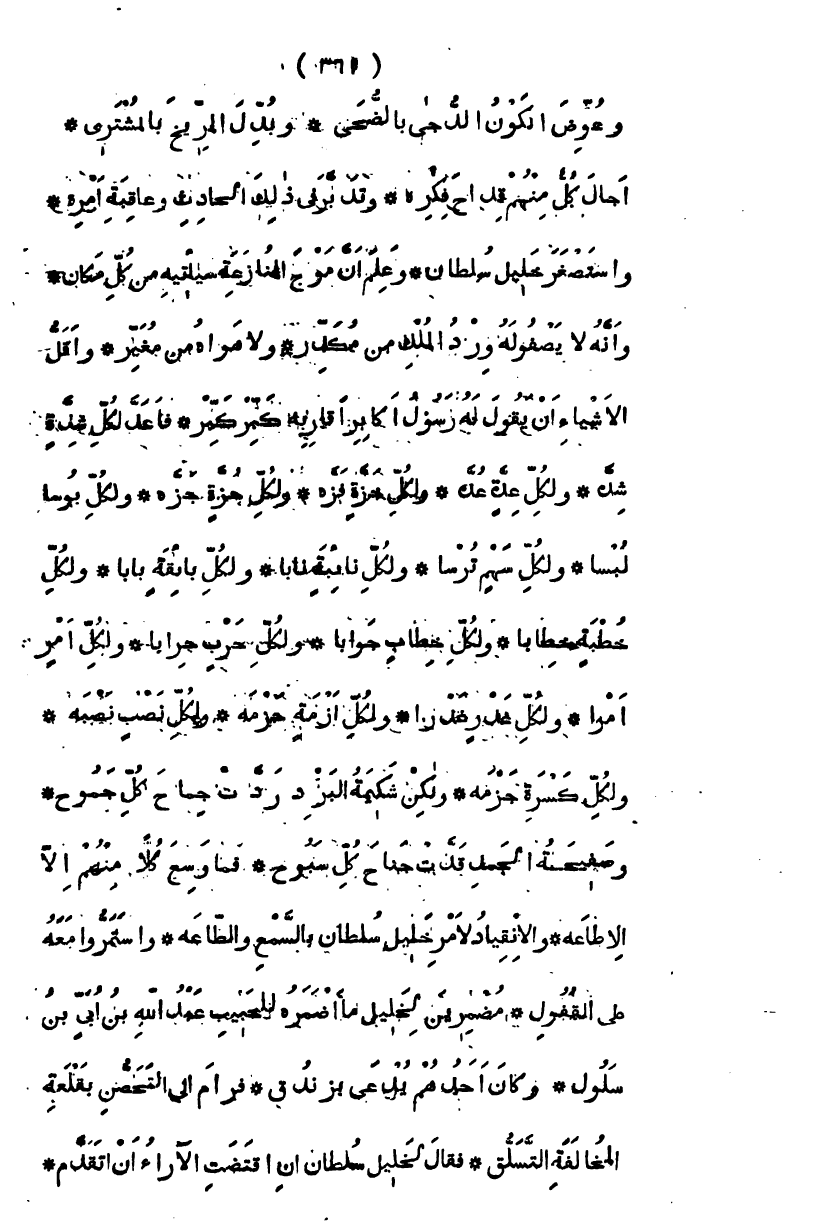 أجال كل منهم قداح فكره، وتدبر في ذلك الحادث وعاقبة أمره، واستصغر خليل سلطان وعلم أن سيأتيه موج المنازعة من كل مكان، وأنه لا يصفو له ورد الملك من مكدر، ولا هواه من مغبر، وأقل الأشياء أن يقول له رسول أكابر أقاربه كبر كبر، فأعد لكل شدة شدة، ولكل غدة عدة، ولكل خزة فزة، ولكل جزة جمزة، ولكل بؤس لبسا، ولكل سهم ترسا، ولكل نائبة نابا، ولكل بائقة بابا، ولكل خطب خطابا، ولكل خطاب جوابا، ولكل حرب حرابا، ولكل أمر أمرا، ولكل غدر عذرا، ولكل أزمة حزمة، ولكل نصب نصبة، ولكل كسرة جزمة ولكن شكيمة البرد كانت ردت جماح كل جموح، وصفيحة الجمد قدت جناح كل سبوح، فما وسع كلاً منهم إلا الإطاعة، والانقياد لأمر خليل سلطان بالسمع والطاعة، واستمروا معه على القفول، مضمرين لخليل ما أضمره للحبيب عبد الله ابن أبي سلول، وكان أحدهم يدعى برندق، فرام إلى التحصن بقلعة المخالفة التسلق، فقال لخليل سلطان إن اقتضت الآراء أن أتقدم،