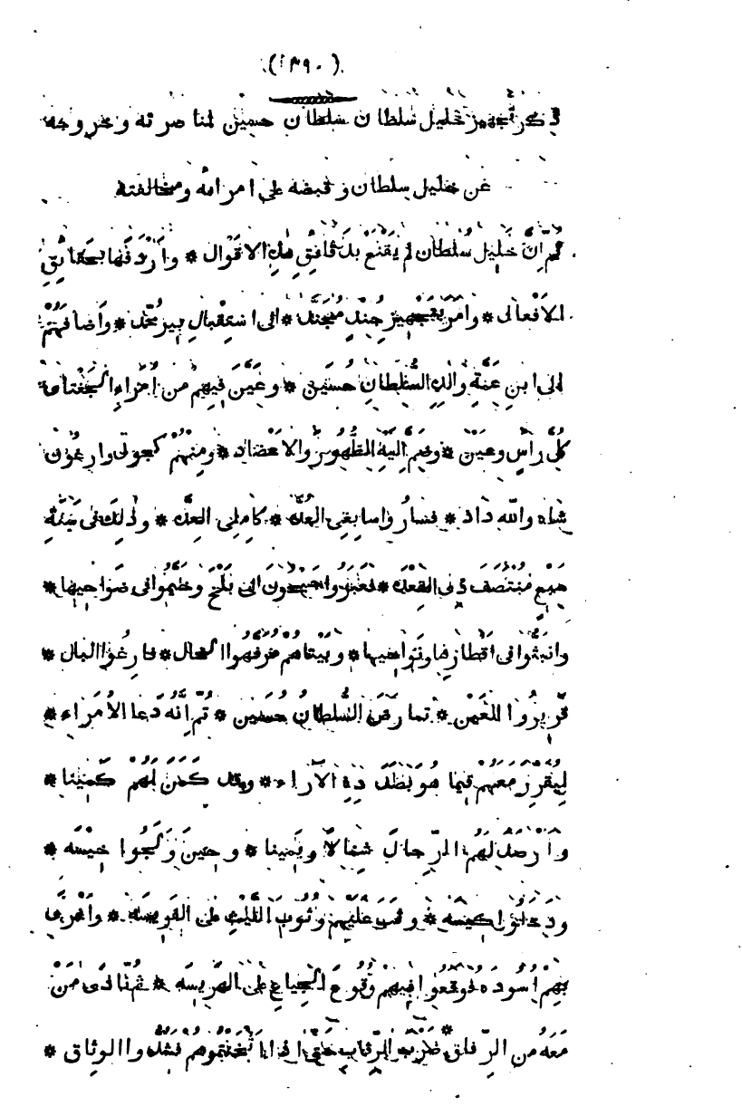 ثم إن خليل سلطان لم يقنع بدقائق هذه الأقوال، وأردفها بحقائق الأفعال، وأمر بتجهيز جند مجند، إلى استقبال بير محمد، وأضافهم إلى ابن عمه والده السلطان حسين، وعين فيهم من أمراء الجغتاي كل رأس وعين، وضم إليه الظهور والأعضاد، ومنهم كجوك وأرغون شاه وألله داد، فساروا سابغي العدة، كاملي العدة وذلك في سنة سبع منتصف ذي القعدة، فعبروا جيحون إلى بلخ وخيموا في ضواحيها، وانبثوا في أقطارها ونواحيها وبينما هم مرفهو الحال، فارغو البال، قريرو العين، تمارض السلطان حسين، ثم إنه دعا الأمراء، ليقرر معهم فيما هو بصدده الآراء، وقد أكمن لهم كميناً، وأرصد لهم الرجال شمالاً ويميناً، وحين ولجوا خيسه، ودخلوا كيسه، وثب عليهم وثوب الليث على الفريسة، وأغرى بهم أسوده فوقعوا فيهم وقوع الجياع على الهريسة، ثم نادى من معه من الرفاق ضرب الرقاب حتى إذا أثخنتموهم فشدوا الوثاق