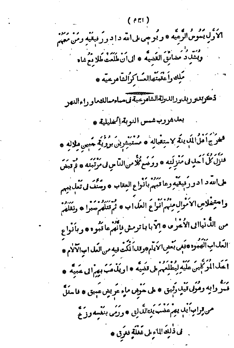 الأول يسوس الرعية، ويوصي على ألله داد ورفيقه ومن معهم ويشدد مضايق القضية، إلى أن طلعت طلائع شاه ملك وأعقبها العساكر الشاه رخية