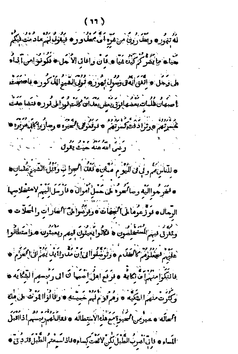له تيمور، ويحذرون من شره أي محذور، فيقول لهم ما دمت فيكم حياً، لا يضركم كيده شيا، فإن وافاني الأجل، فكونوا من أذاه على وجل، اتفق أنه في وصول تيمور، توفي الشيخ المذكور، فأصبحت أصبهان ظلمات بعضها فوق بعض بعد أن كانت نوراً على نور، فتضاعفت حسرتهم، وترادفت كسرتهم، فوقعوا في الحيرة، وصاروا كأبي هريرة رضي الله عنه حيث يقول