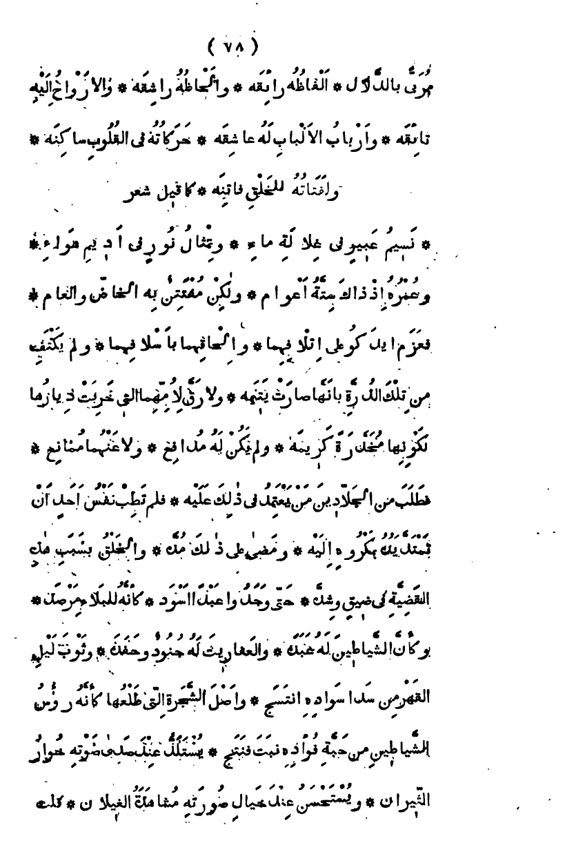 مربى بالدلال، ألفاظه رائقة، وألحاظه راشقة، والأرواح إليه شائقة، وأرباب الألباب له عاشقة، حركاته في القلوب ساكنة، ولفتاته للخلق فاتنة، كما قيل