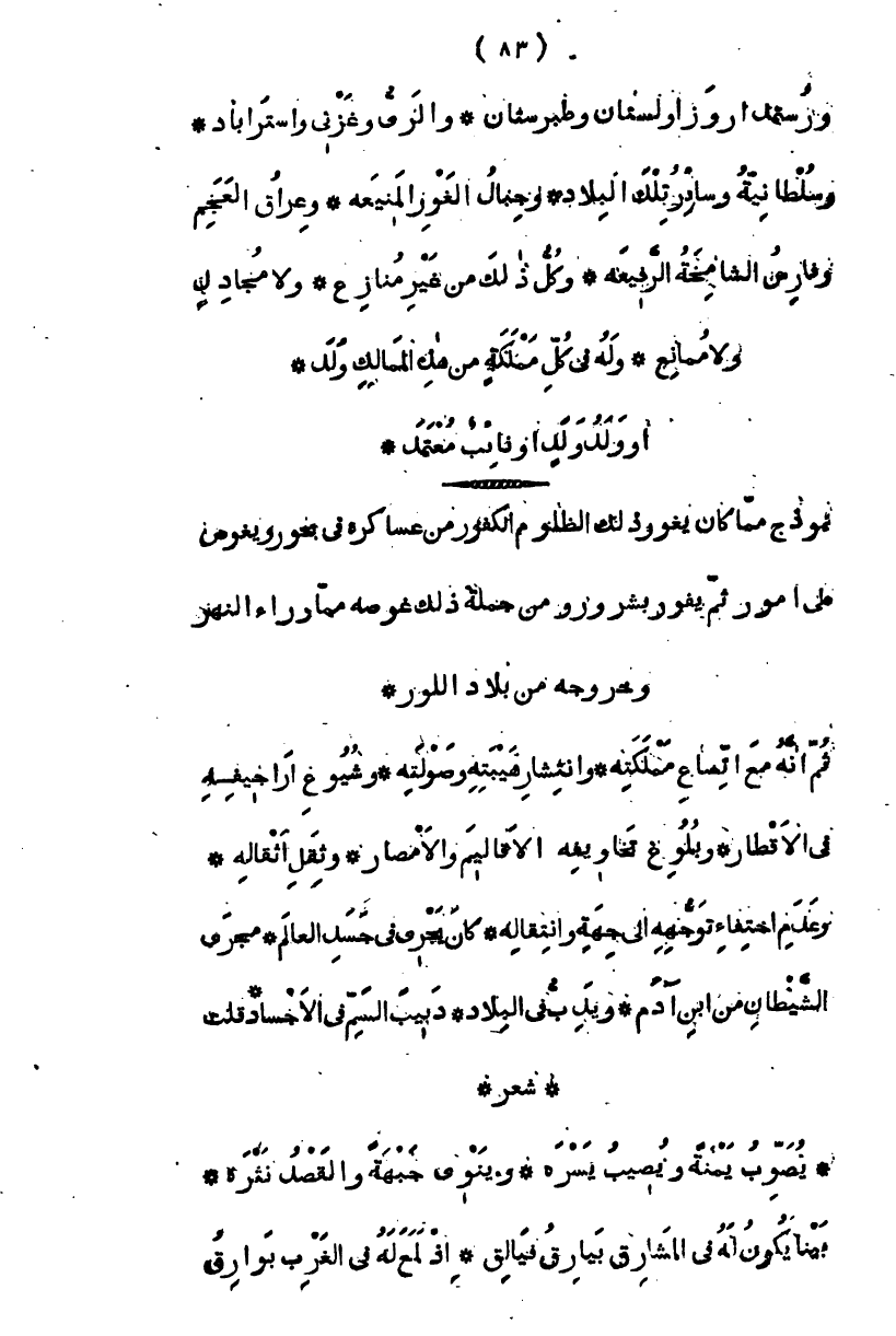 من عساكره في بحور، ويغوص على أمور، ثم يفور بشرور ومن جملة ذلك غوصه مما وراء النهر وخروجه من بلاد اللور