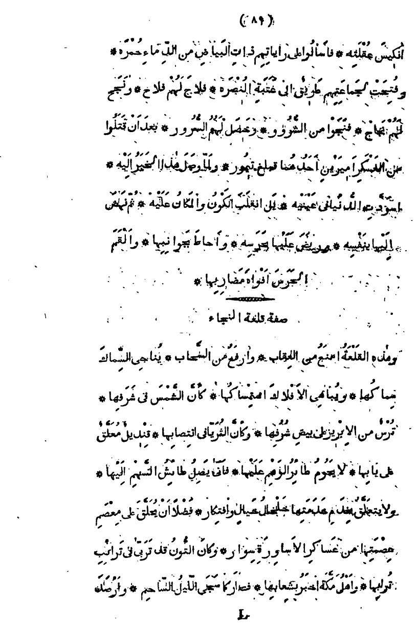 وهذه القلعة أمنع من العقاب، وأرفع من السحاب، يناجي السماك سماكها، ويباهي الأفلاك استمساكها، كأن الشمس في شرفها ترس من الإبريز على بعض شرفها، وكأن الثريا في انتصابها، قنديل معلق على بابها، لا يحوم طائر الوهم عليها، فأنى يصل طائش السهم إليها، ولا يتعلق بخدم خدمتها خلخال خيال وافتكار، فضلاً عن أن يحلق على معصم عصمتها من عساكر الأساورة سوار وكان ألتون قد تربى في ترائب ترابها، وأهل مكة أخبر بشعابها، فصار كلما سجى الليل الساجم، وأرصد