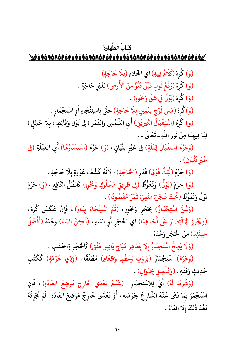 (وَ) حَرُمَ (بَوْلٌ) وَتَغَوُّطٌ (فِي طَرِيقٍ مَسْلُوكٍ وَنَحْوِهِ) كَالظِّلِّ النَّافِعِ، (وَ) حَرُمَ بَوْلٌ وَتَغَوُّطٌ (تَحْتَ شَجَرَةٍ مُثْمِرَةٍ ثَمَرًا مَقْصُودًا).