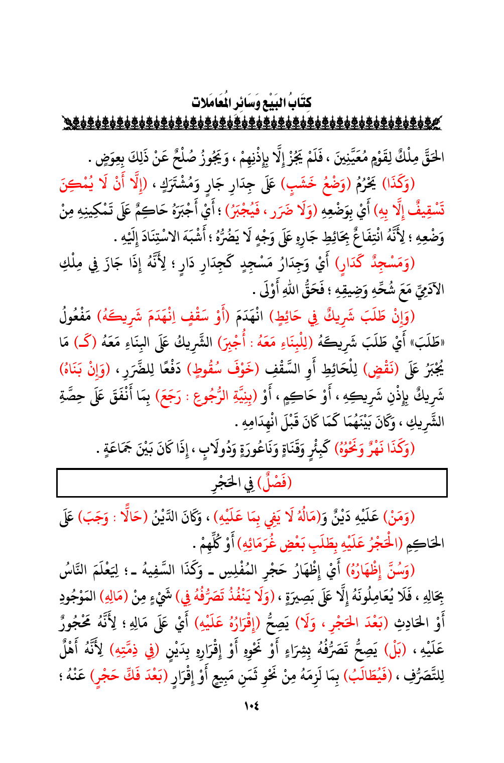 (فَصْلٌ) فِي الحَجْرِ