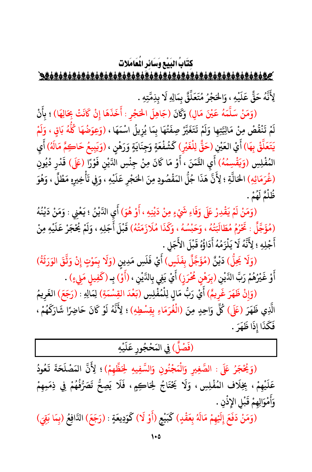 (فَصْلٌ) فِي المَحْجُورِ عَلَيْهِ