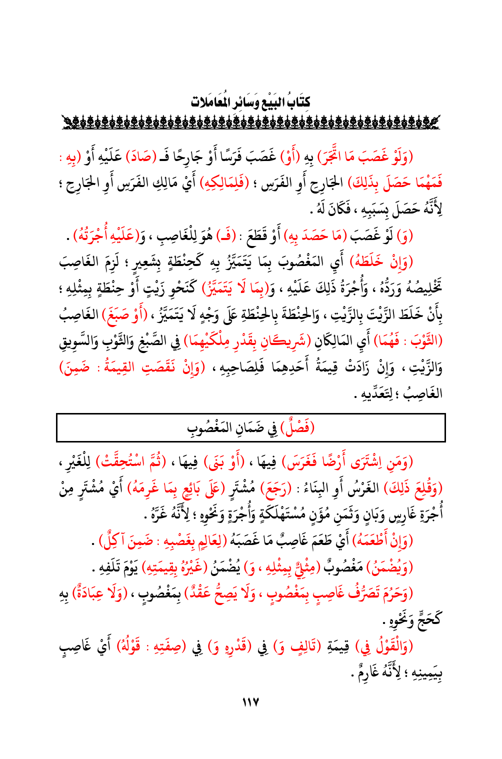 (فَصْلٌ) فِي ضَمَانِ المَغْصُوبِ