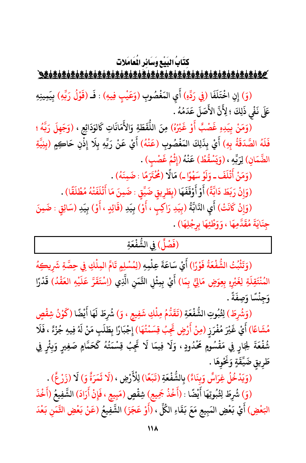 (وَتَثْبُتُ الشُّفْعَةُ فَوْرًا) أَيْ سَاعَةَ عِلْمِهِ (لِمُسْلِمٍ تَامِّ المِلْكِ فِي حِصَّةِ شَرِيكِهُ المُنْتَقِلَةِ لِغَيْرِهِ بِعِوَضٍ مَالِيٍّ بِمَا) أَيْ بِمِثْلِ الثَّمَنِ الَّذِي (اِسْتَقَرَّ عَلَيْهِ العَقْدُ) قَدْرًا وَجِنْسًا وَصِفَةً.