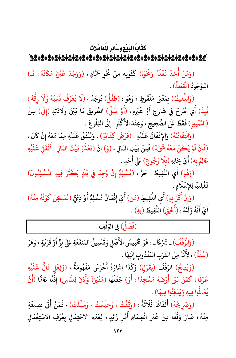 (فَصْلٌ) فِي الوَقْفِ