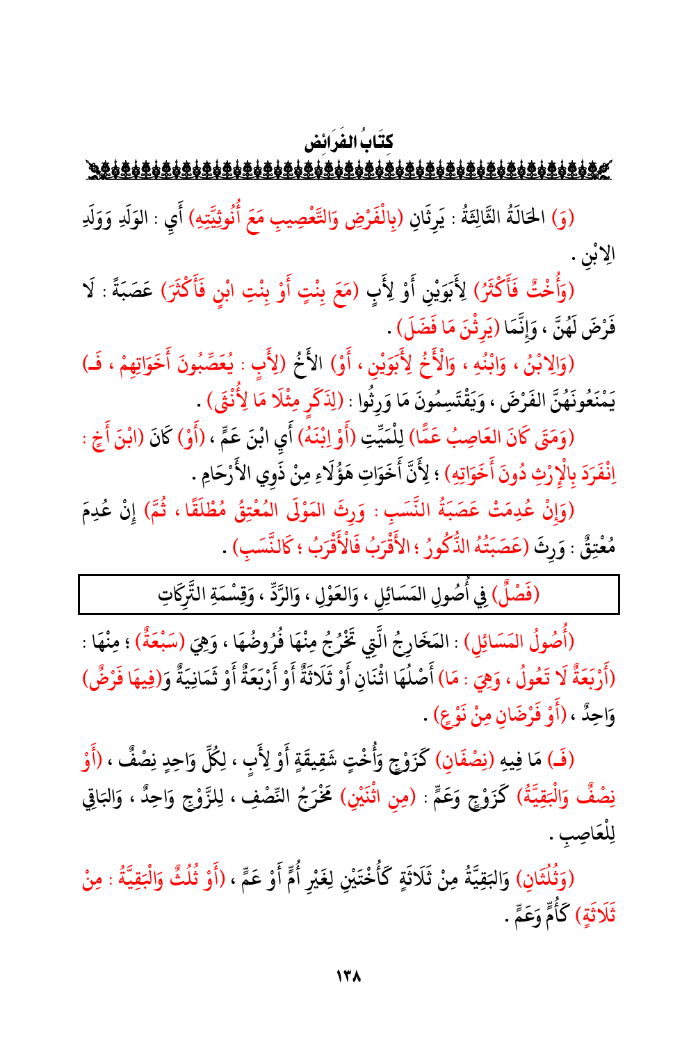 (فَصْلٌ) فِي أُصُولِ المَسَائِلِ، وَالعَوْلِ، وَالرَّدِّ، وَقِسْمَةِ التَّرِكَاتِ