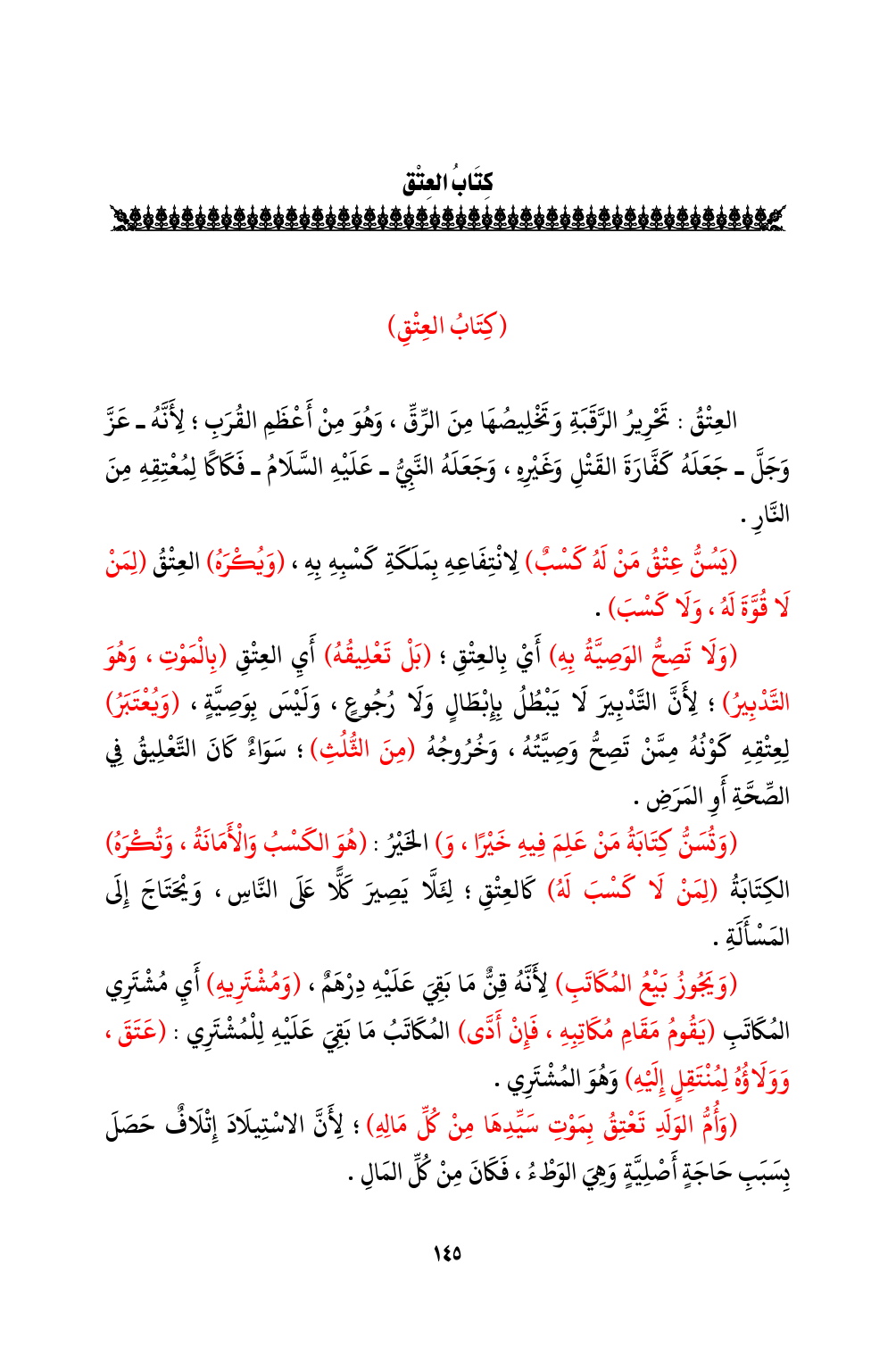 العِتْقُ: تَحْرِيرُ الرَّقَبَةِ وَتَخْلِيصُهَا مِنَ الرِّقِّ، وَهُوَ مِنْ أَعْظَمِ القُرَبِ؛ لِأَنَّهُ - عَزَّ وَجَلَّ - جَعَلَهُ كَفَّارَةَ القَتْلِ وَغَيْرِهِ، وَجَعَلَهُ النَّبِيُّ - عَلَيْهِ السَّلَامُ - فَكَاكًا لِمُعْتِقِهِ مِنَ النَّارِ.
