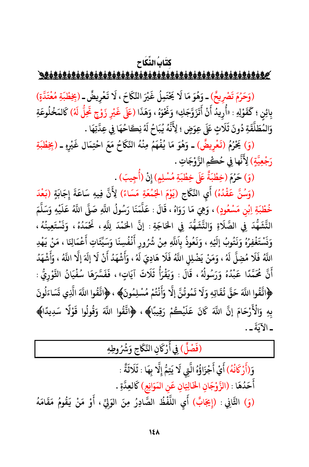 (فَصْلٌ) فِي أَرْكَانِ النِّكَاحِ وَشُرُوطِهِ