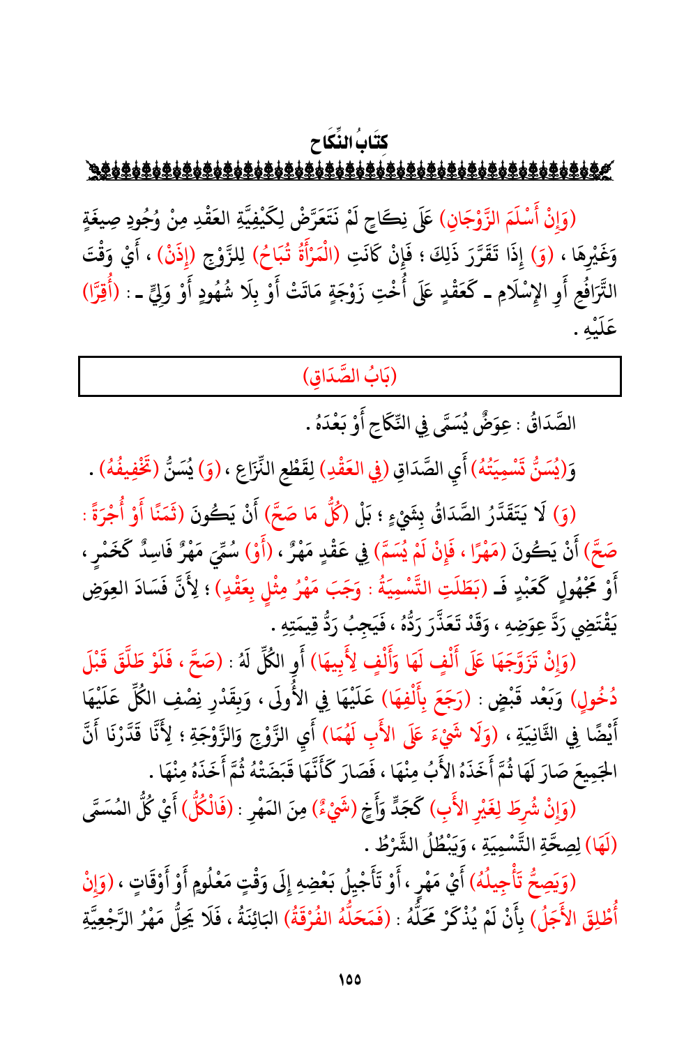 الصَّدَاقُ: عِوَضٌ يُسَمَّى فِي النِّكَاحِ أَوْ بَعْدَهُ.