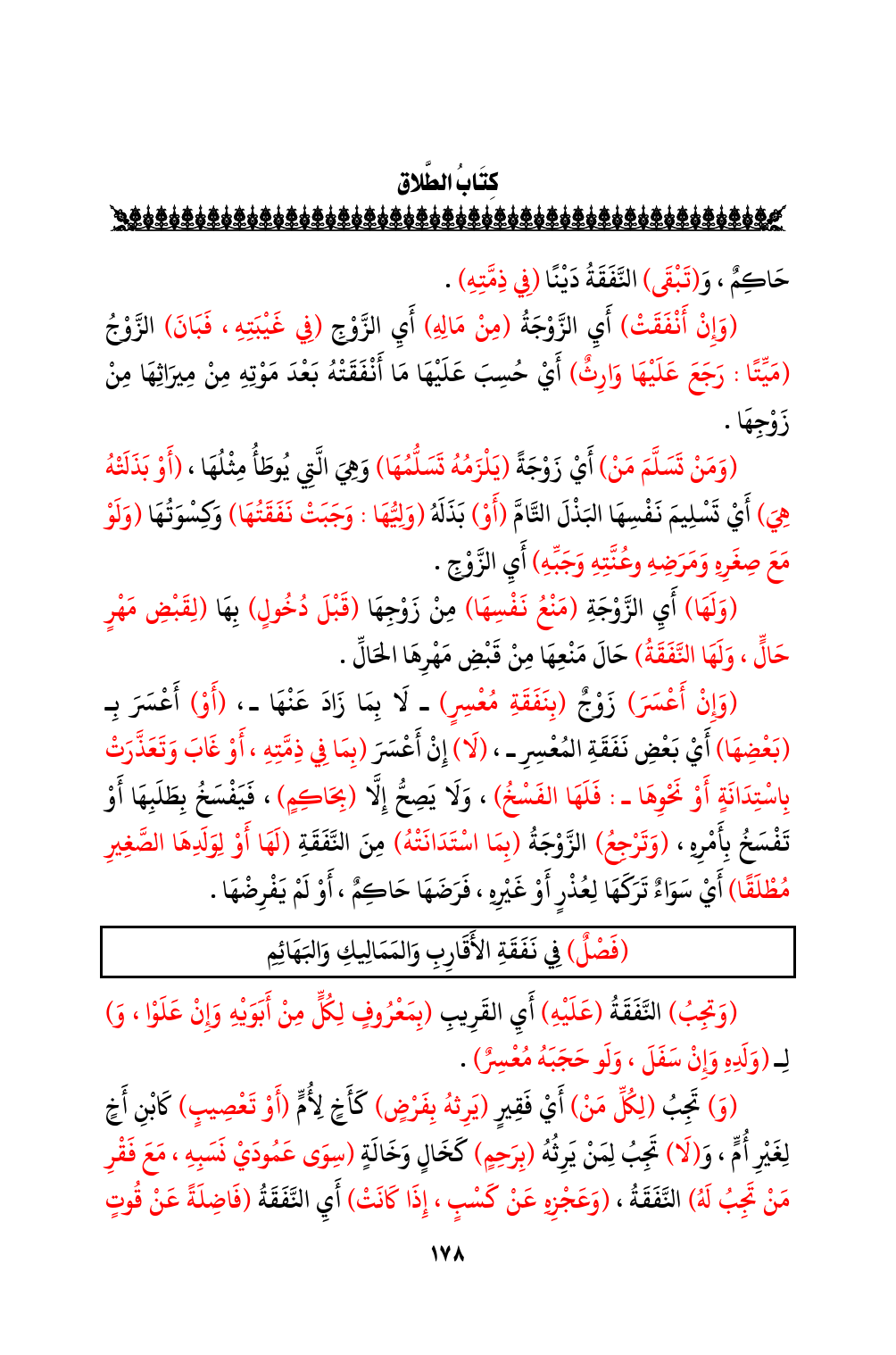 (فَصْلٌ) فِي نَفَقَةِ الأَقَارِبِ وَالمَمَالِيكِ وَالبَهَائِمِ