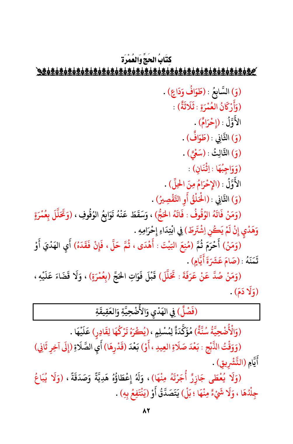 (وَأَرْكَانُ العُمْرَةِ: ثَلَاثَةٌ):