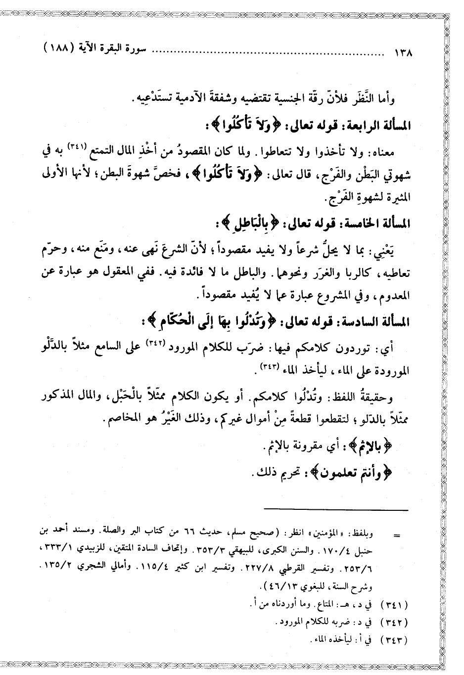 {بِالإِثْمِ} [البقرة: 188]: أَيْ مَقْرُونَةً بِالْإِثْمِ {وَأَنْتُمْ تَعْلَمُونَ} [البقرة: 188]: تَحْرِيمَ ذَلِكَ.